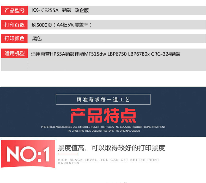 凱欣KX-CE255A 適用惠普HP55A硒鼓佳能MF515dw LBP6750 LBP6780x CRG-324硒鼓 全國統(tǒng)一價(jià):236元
